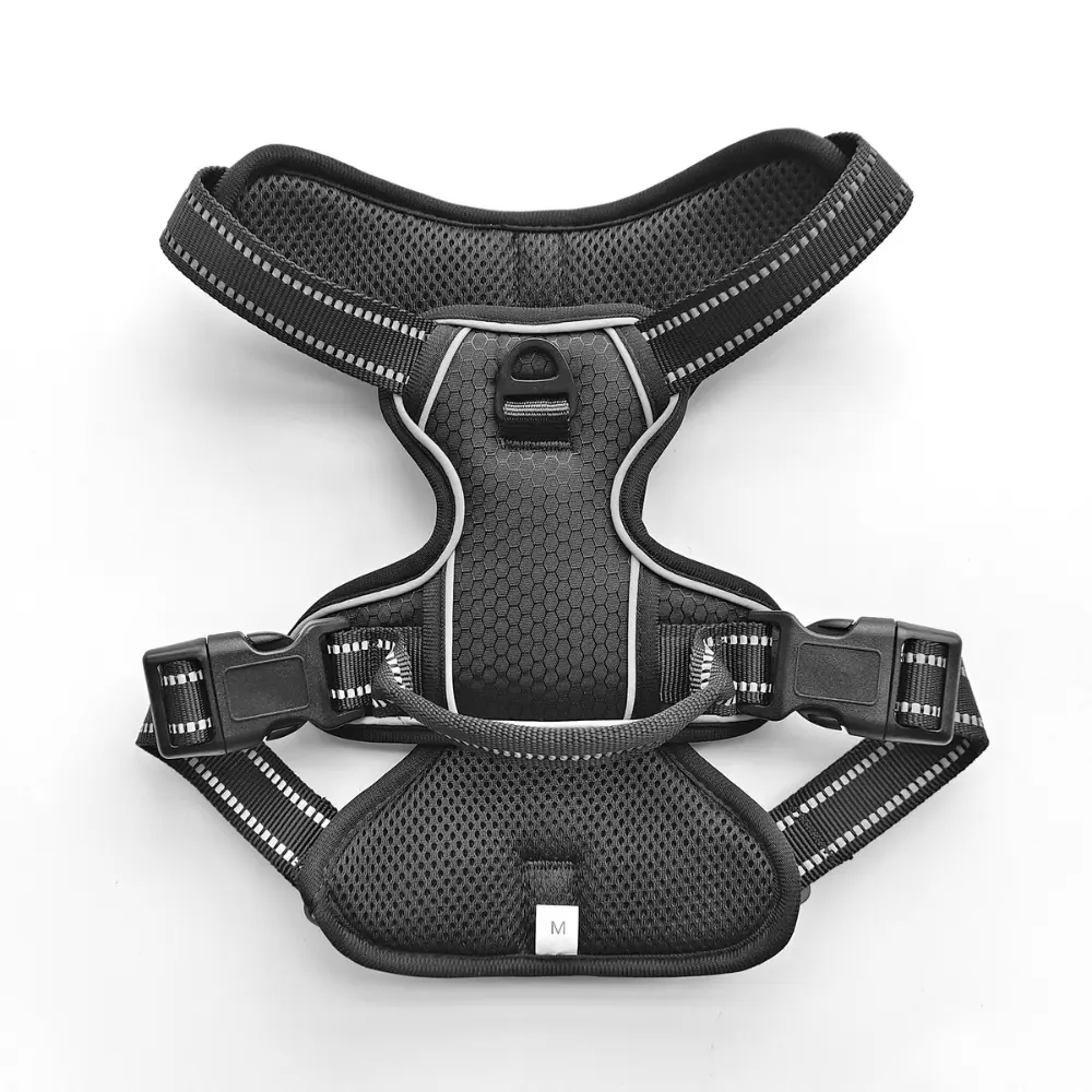 The Adjustable Reflective Dog Harness with Back Handle is designed to offer the perfect balance of comfort, control, and safety during walks, training, or travel. Made from high-quality, durable materials with a stylish hexagonal pattern, this harness features a soft, padded interior to prevent irritation and ensure all-day comfort. Its lightweight design allows your dog to move freely without restriction, making it suitable for dogs of all sizes.