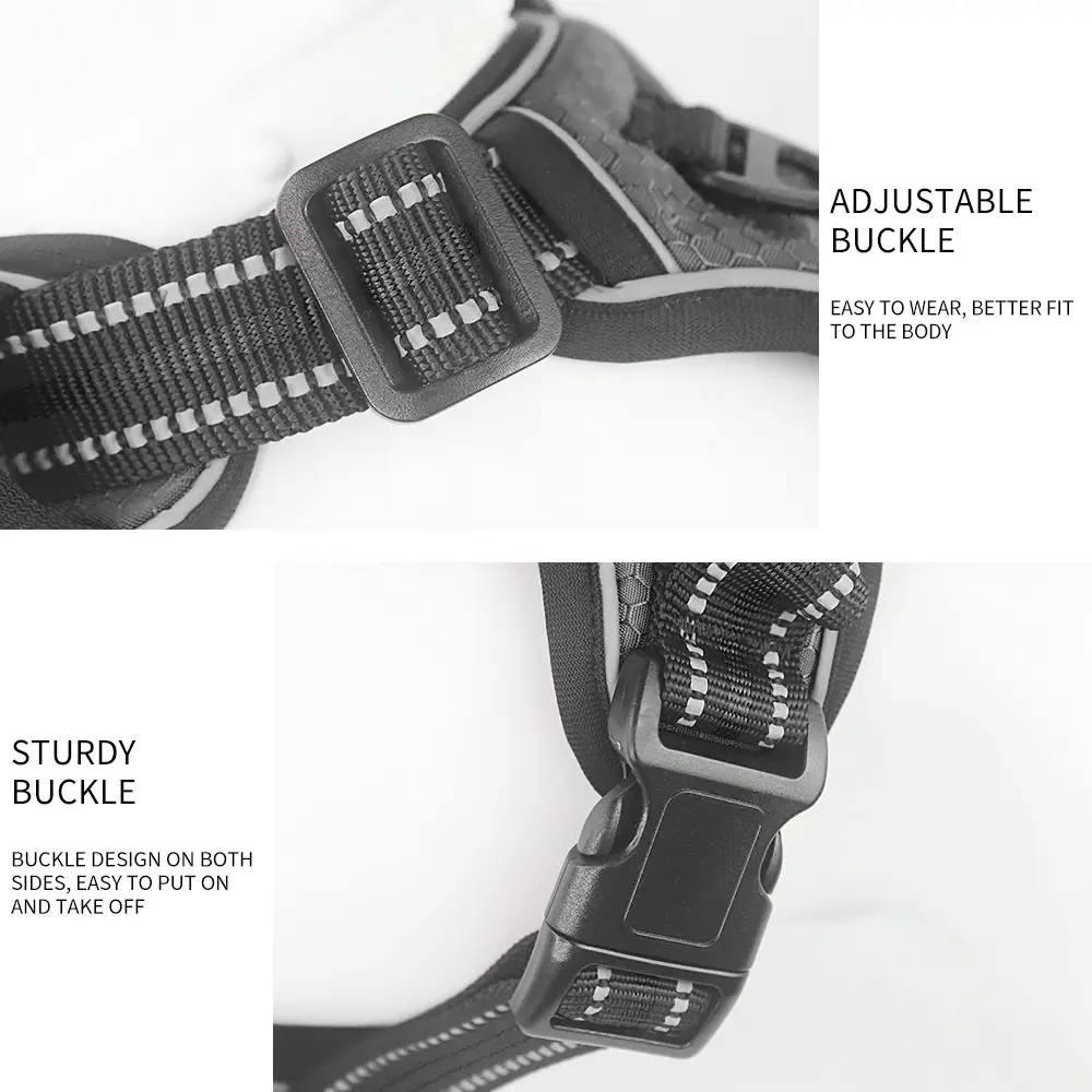 - Metal Buckle: Durable metal attachment point for leash connection.